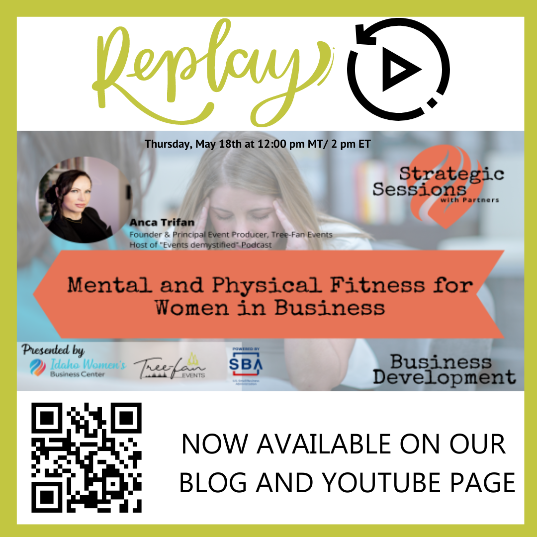 If you’ve missed the May 18th at 12:00 pm MT/2 pm ET talk presented by Idaho Women’s Business Center and Tree-Fan Events, during which our guest speaker, Anca Platon Trifan, shared practical tips and strategies for prioritizing mental and physical health, managing stress, and achieving a healthy work-life balance, worry no longer, we have the main takeaways below and the video recording during which she discussed the challenges she has faced as a woman in business, and how she has used mental and physical fitness strategies to achieve success.L